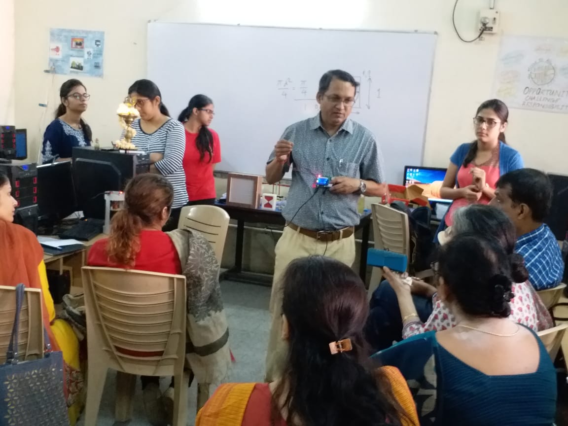 This workshop was an effort to make the Science and Maths teachers comfortable with programming and to sensitize them about microcontroller and their applications.