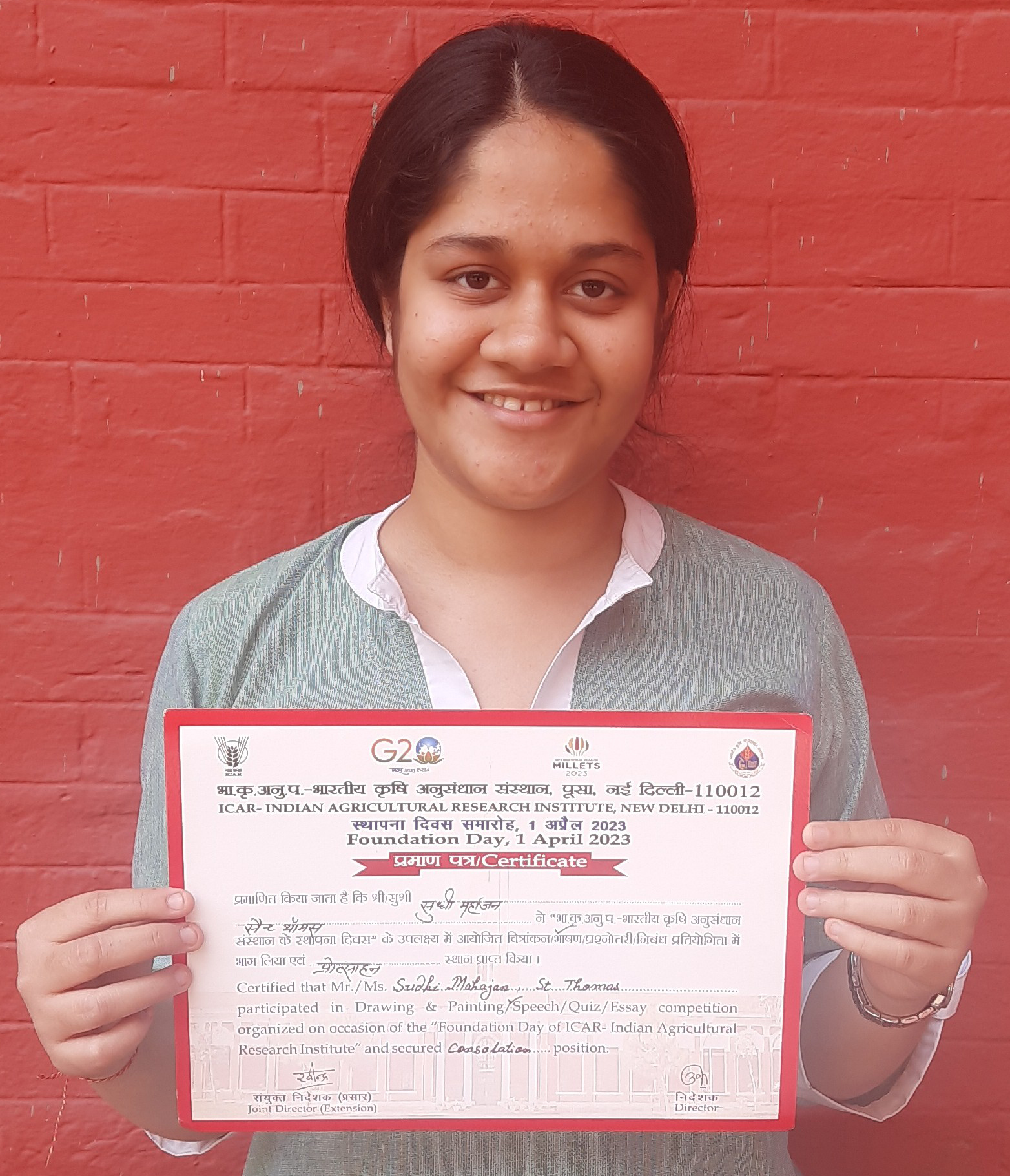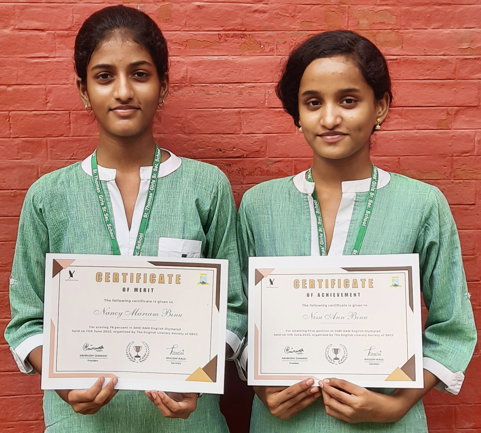 Nissi Ann Binu(XIIScB) won I prize in SHRI RAM English Olympiad Competition organized by The English Literary Society of Shri Ram College of Commerce.