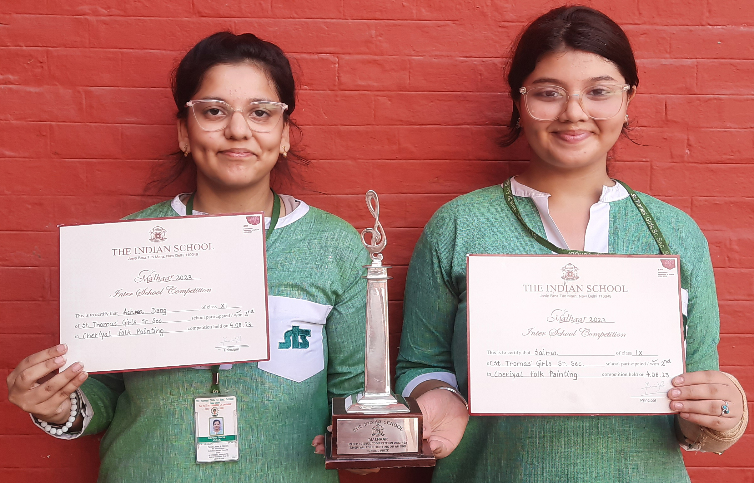 Ashne Dang(XIHA) and Alina Jaffery(XIIHB) won II prize in the Srijan Competition held at St. Thomas' Girls Sr. Sec. School, Mandir Marg.