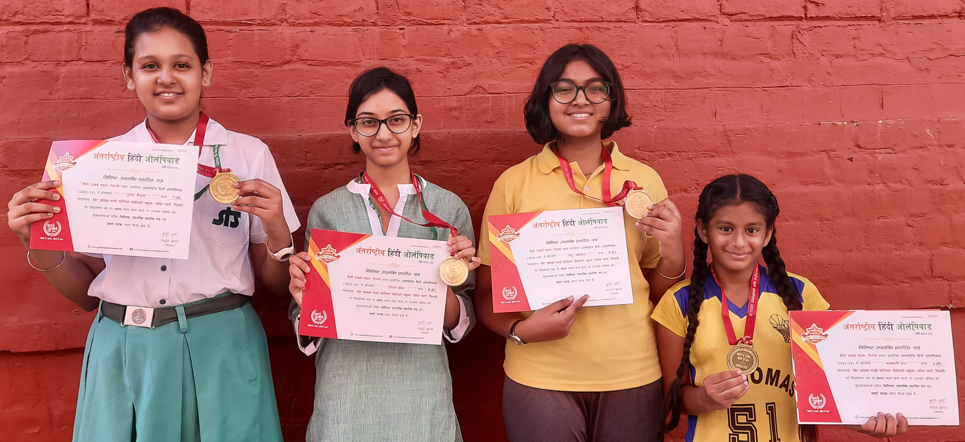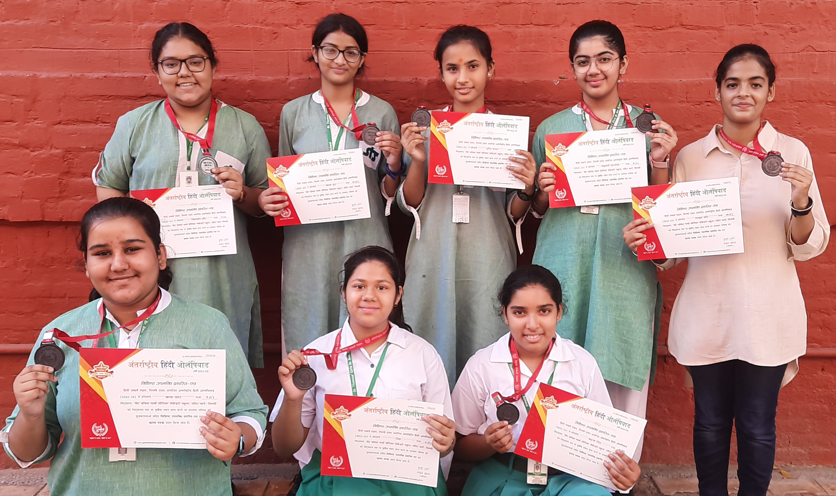 In the International Hindi Olympiad - Kamakshi Pant(VIIB), Devanshi Nivedita Panda(VIIID), Hunar Mehta(VIIID), Doyel Nanda(IXB), Chakshu Aggarwal(XE), Megha Malhotra(XIHB) won Gold medals. Stutii Agarwal(VIIB), Srinika Kathuria(VIIID), Anannya Bansal(IXB), Atulya Krishna(XE), Dhanyata Oberoi(XIScA) won Silver medals. Riya(VIIE), Adya Singh(VIIID), Jhanvi Kataria(IXE), Simarpreet kaur(XA), Bhavya Kant(XC), Manya Soot(XIScB), Sargun Kaur(XICA), Tripti Bansal(XICB) won Bronze medals.