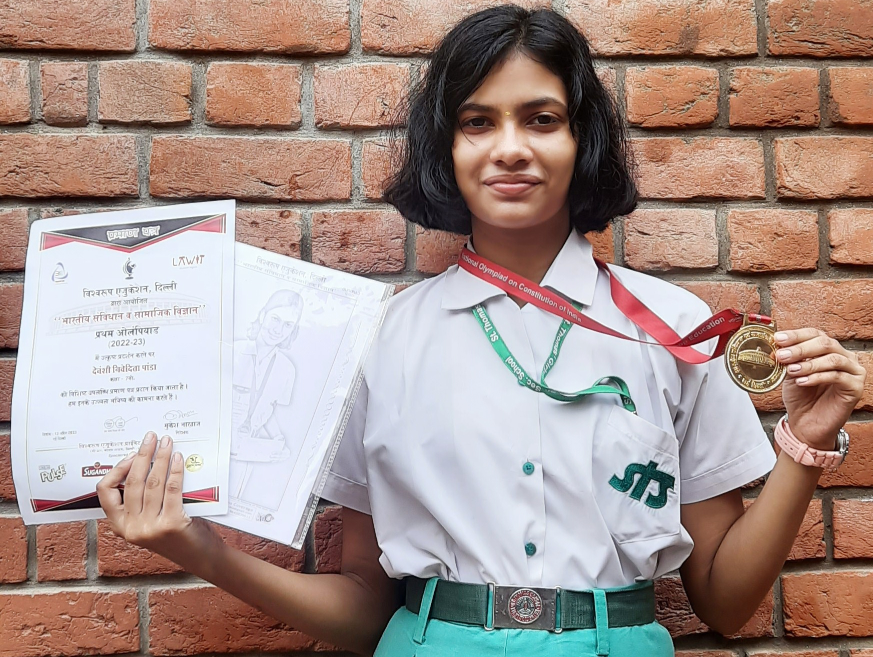 Devanshi Nivedita Panda(VIIID) won I prize in S.St Olympiad based on the Constitution organised by Vishwaroop Education, Delhi. She has been awarded with a cash prize of Rs. 5000, a Medal, a Certificate and a self portrait.