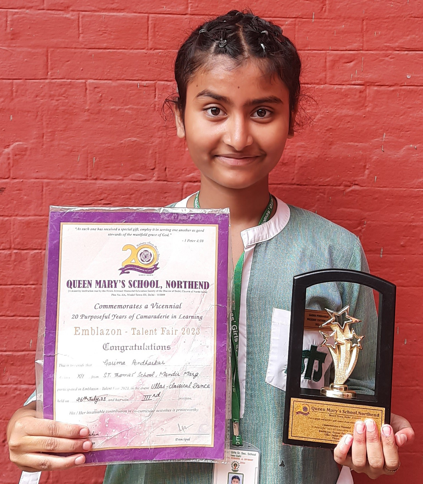 Garima Pendharkar(XIIScA) won III prize in the Ullas - Classical Dance Competition held at Queen Mary's School, Northend.