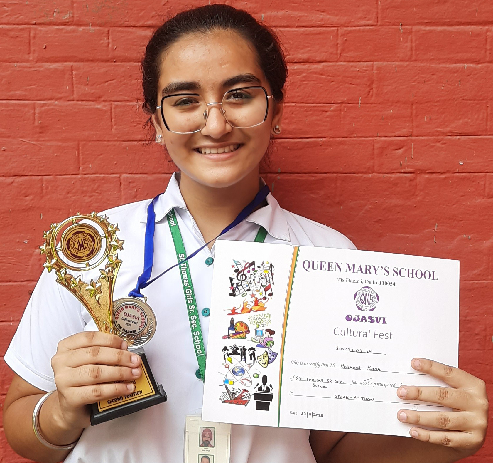 Harnoor Kaur(VIIIB) won the II position in the Speak-a-thon held at Queen Mary's School, Tis Hazari.
