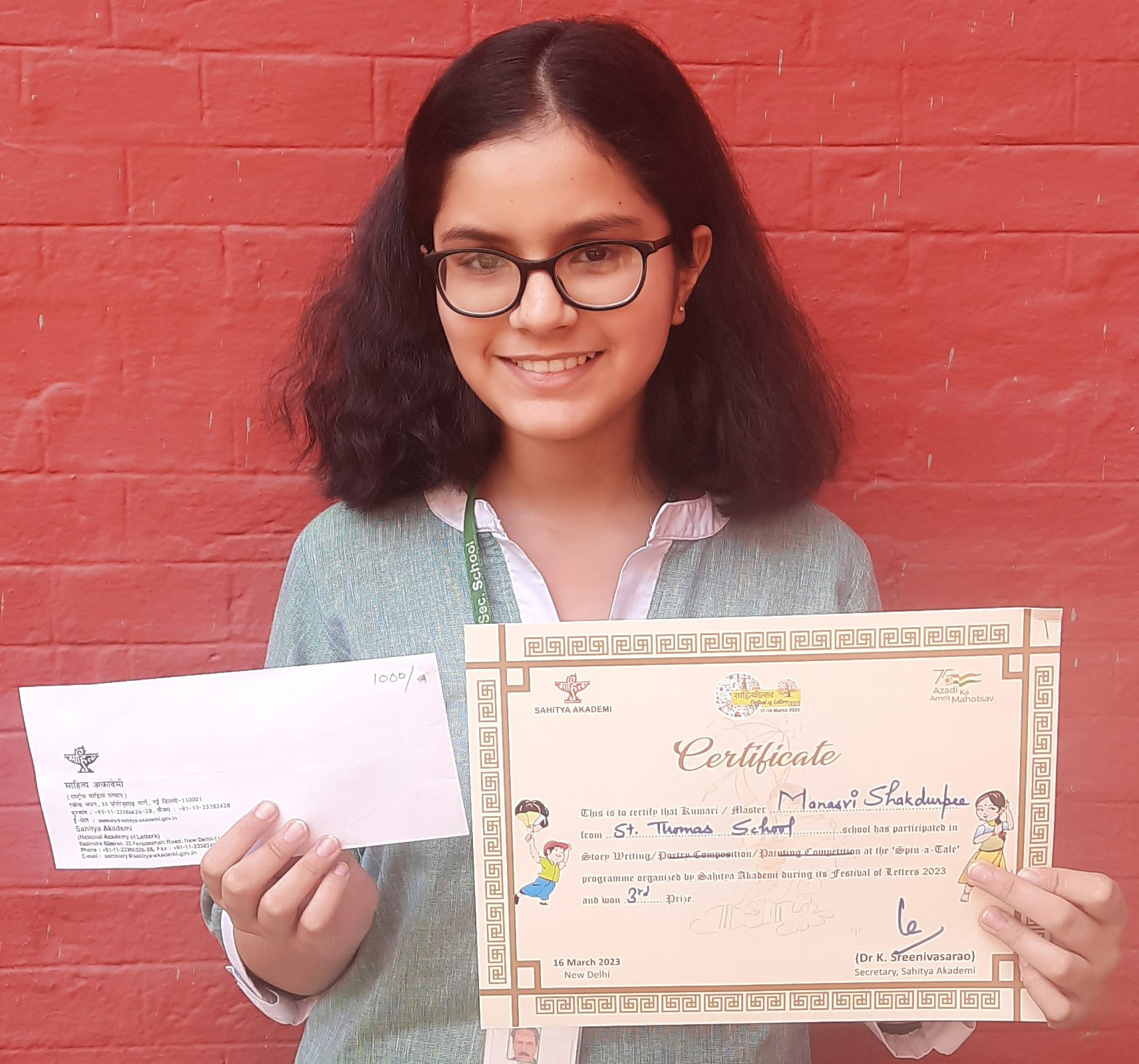 Manasvi Shakdwipee(XA) won the III prize in Spin-A-Tale. It included a cash prize of Rs. 500.