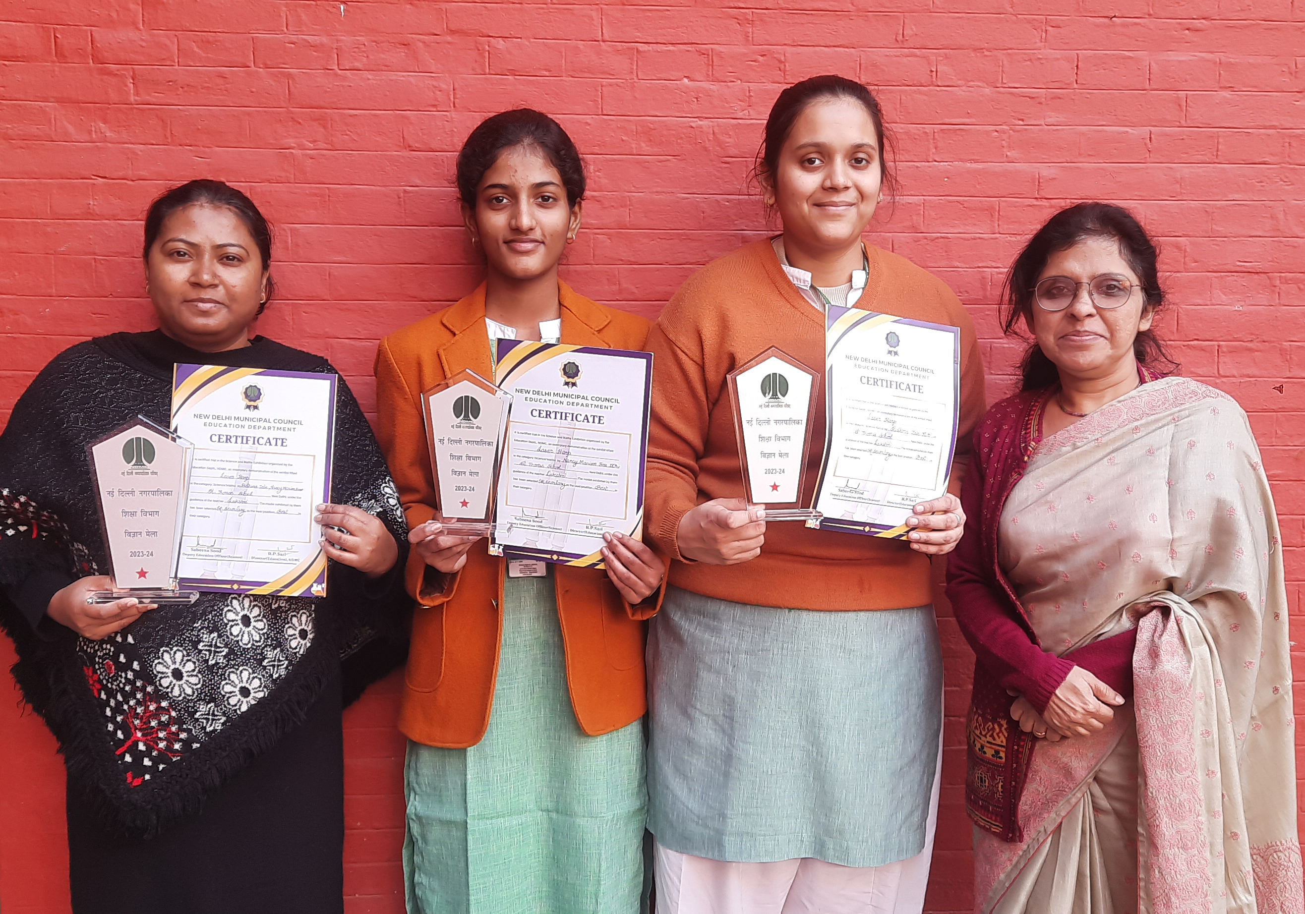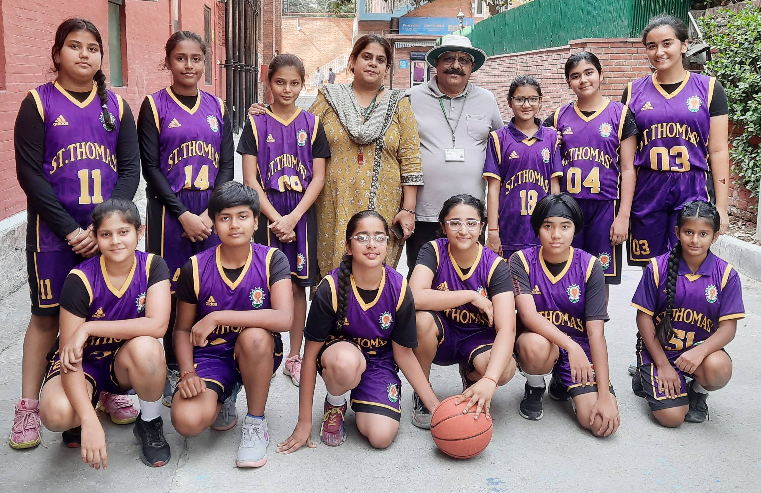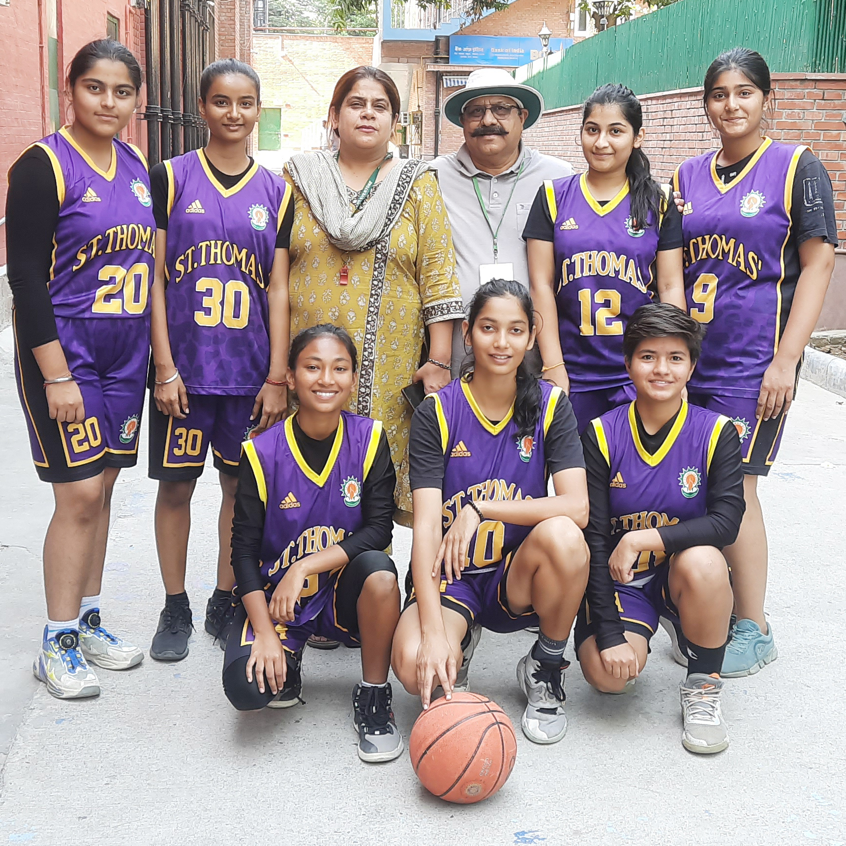 Aadya Khandelwal(VIIIA), Ashwika Aggarwal(VIIIB), Harnoor Kaur (VIIIB), Shefali Gupta (VIIIC), Vaishnavi Bhavsar (VIIIC) won Silver Medals in the U-14 Delhi School State Basketball Championship.