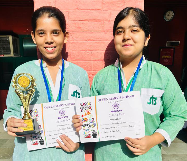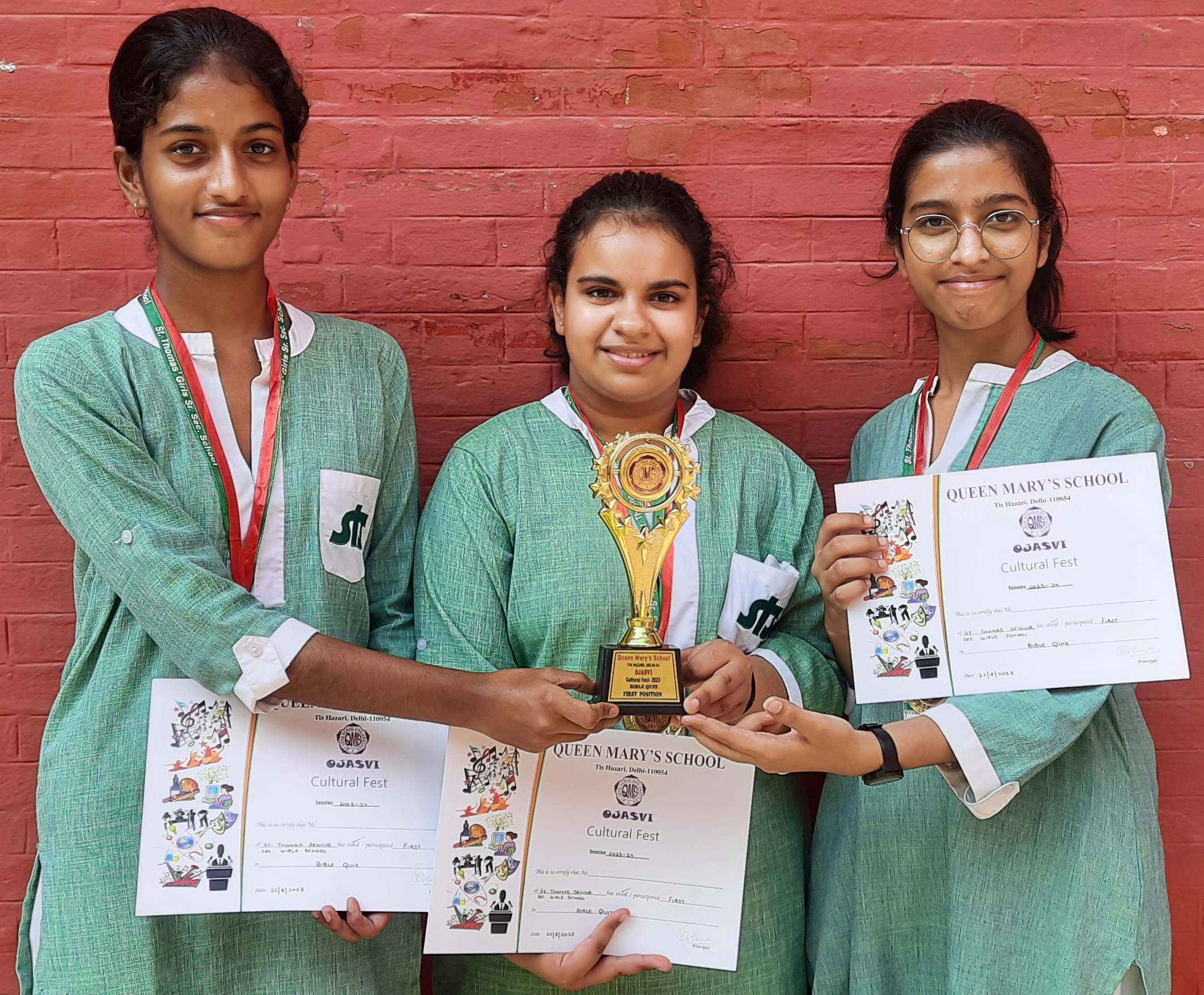 Jiya Kaur Ajmani(IXA), Saumya Singh(IXA), Shrimoyee Mandal(IXA), Udbhavi(IXA), Prachi Samanta(IXB), Prisha Tewari(IXB), Shriya Mehta(IXB), Khwaish Tandon(IXC), Riddhi Aggarwal(IXE), Manjira Mitra(XD), Sondarya Shivani(XD), Preeti Bhui(XIHB) won II prize in the Indian Music Competition held at Queen Mary's School.