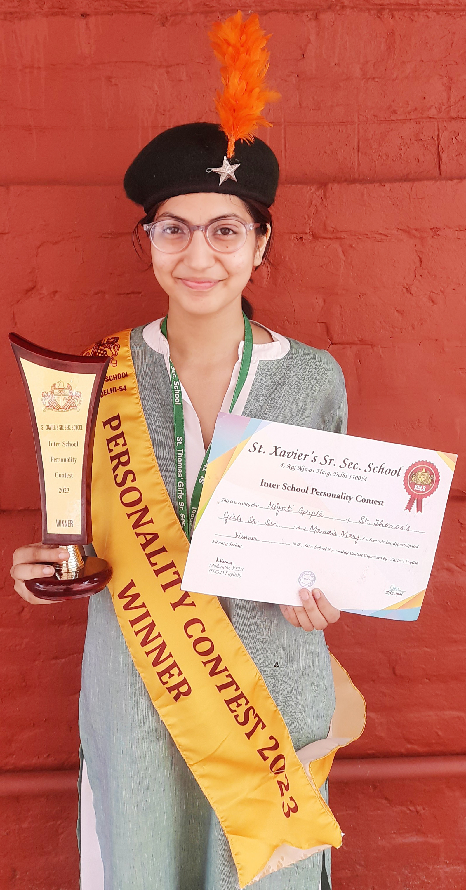 Niyati Gupta(XIIHB) was declared 'MISS PERSONALITY - 2023' in the Inter School Personality Contest organised by Xavier's English Literary Society held at St. Xavier's Sr. Sec. School.