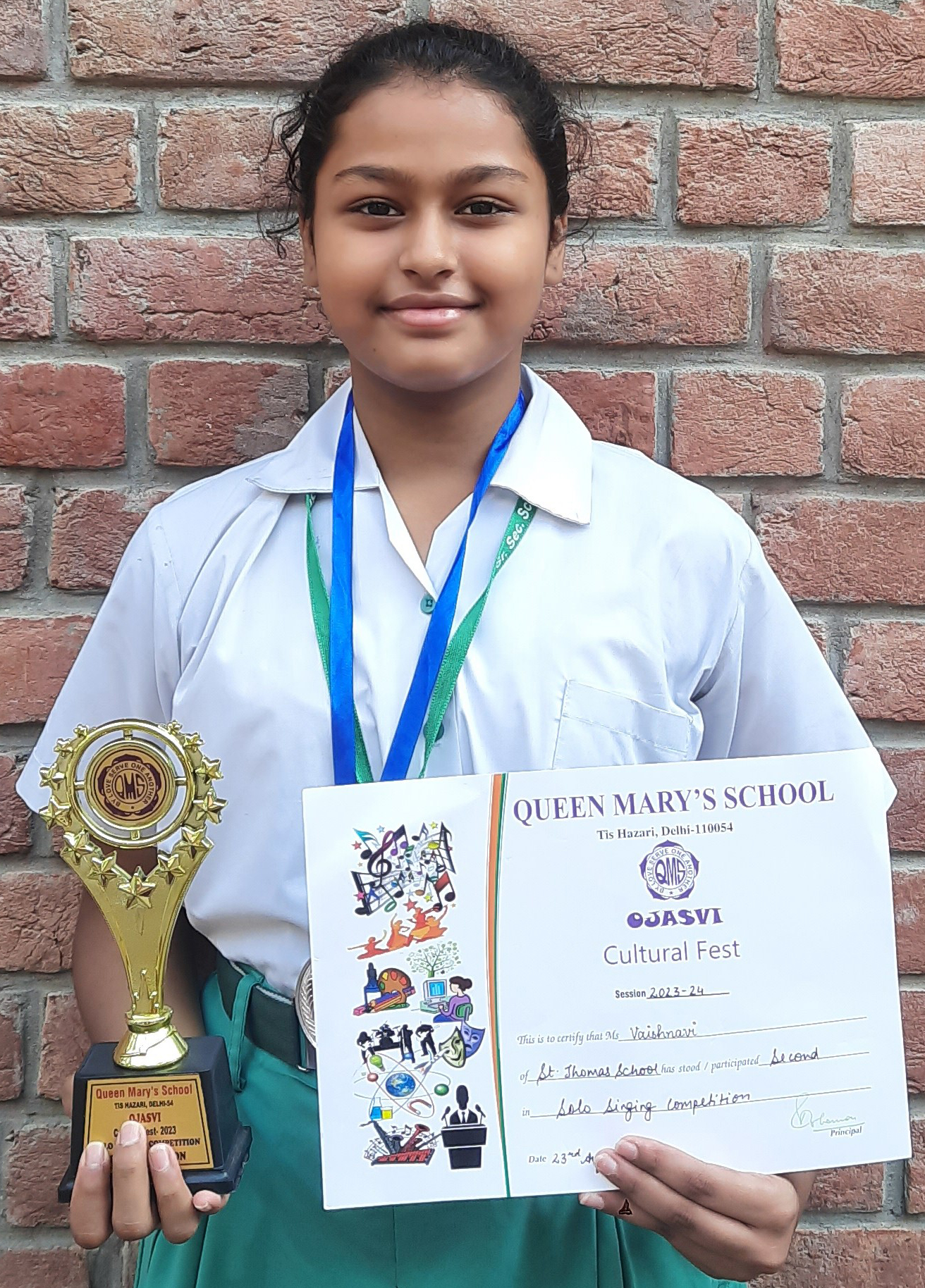 Vaishnavi Karanam(VIIB) won the II position in the Solo Singing Competition held at Queen Mary's School, Tis Hazari.