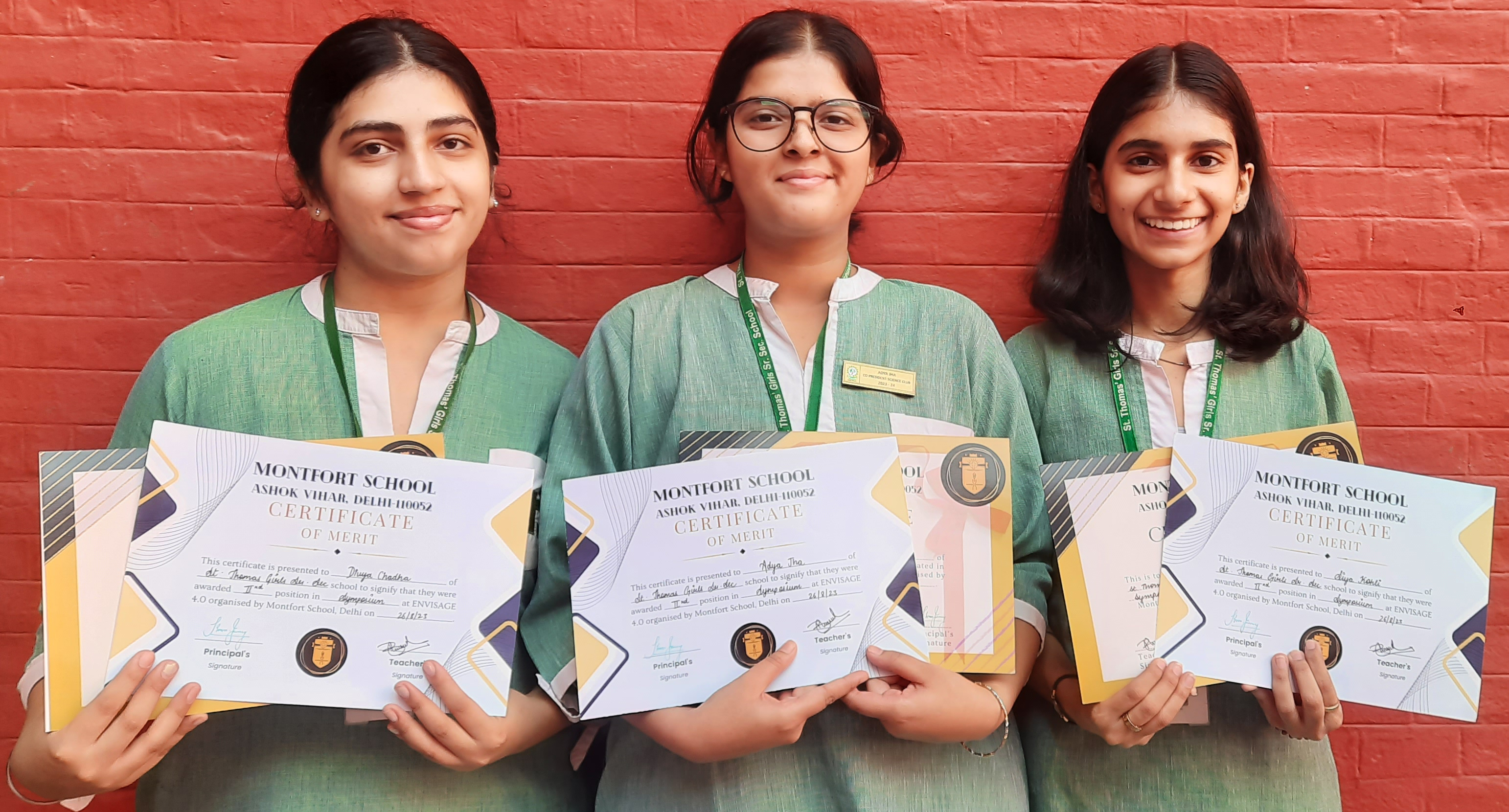 Adya Jha(XIIScB), Divya Chadha(XIIScB), Siya Kohli(XIIScB) won II prize in the Science Symposium held at Montfort Senior Secondary School, Ashok Vihar.