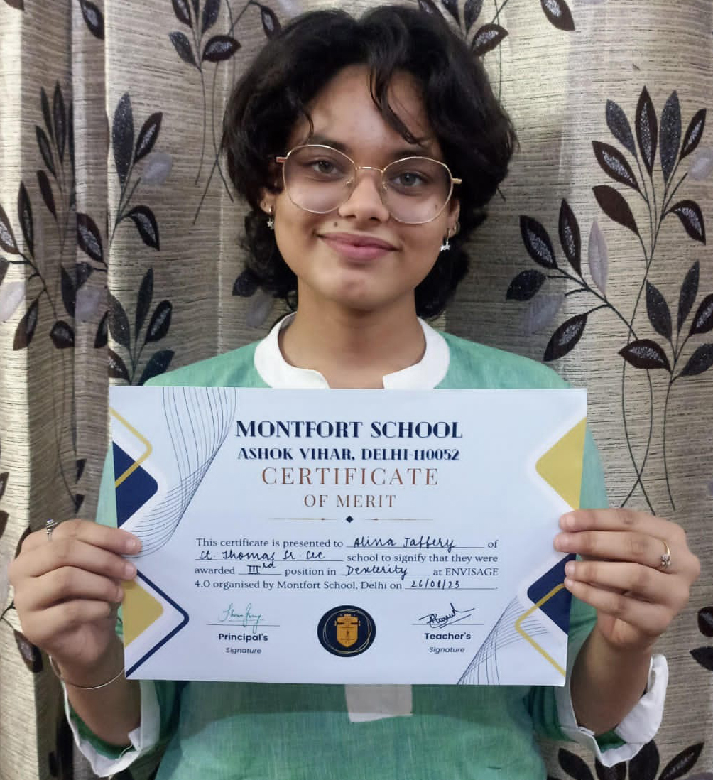 Alina Jaffery(XIIHB) won III position in Art Competition held at Montfort Senior Secondary School, Ashok Vihar.