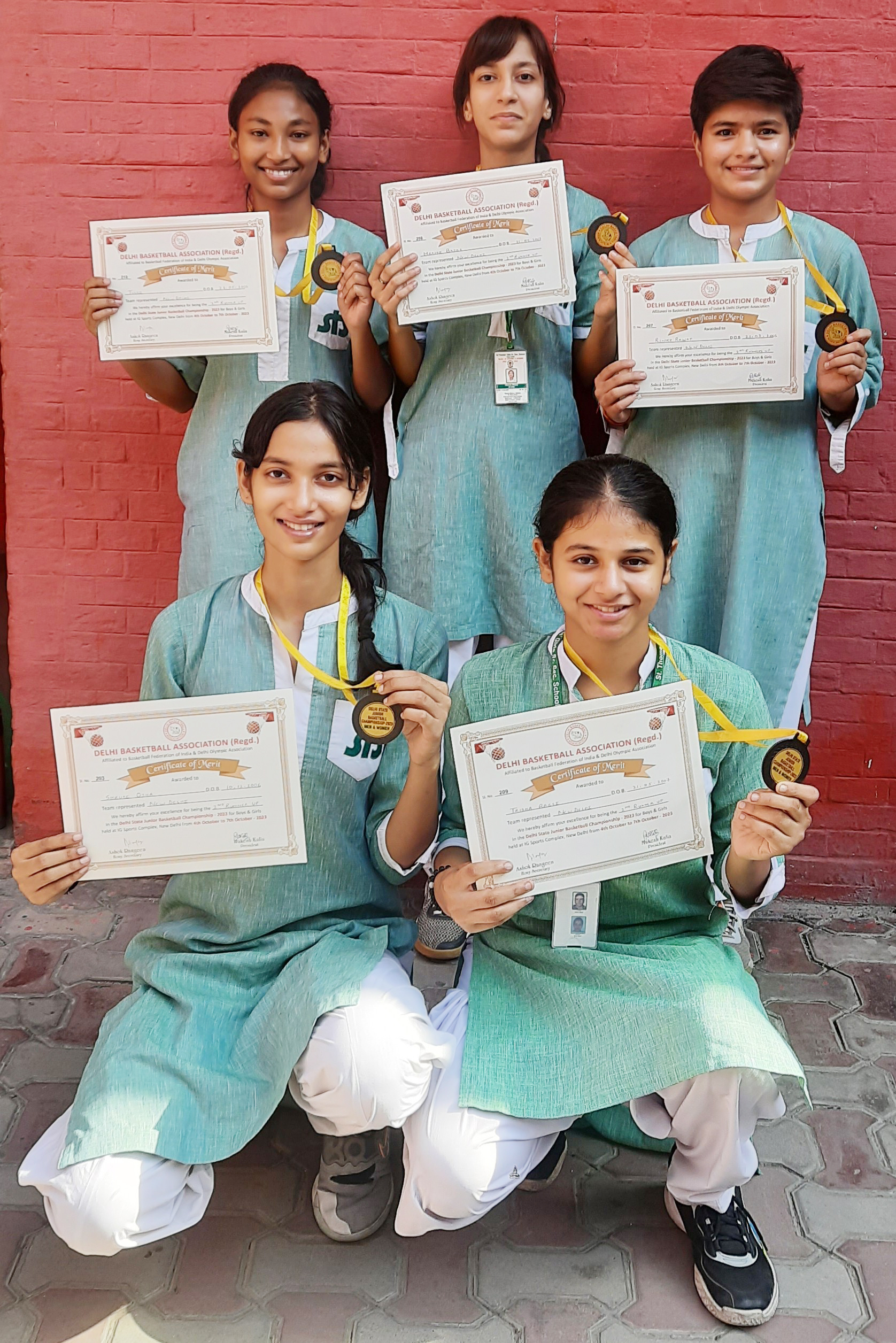 Shruti Ojha(XIIHA), Mansi Bajaj(XIHB), Rinky Rawat(XIHB), Tulsi(XIHB), Trisha Bassi(XIHB) won Bronze Medals in Delhi State Junior Basketball Championship held at IG Sports Complex, New Delhi organized by Delhi Basketball Association. They represented New Delhi District. Shruti Ojha won Best Player award.