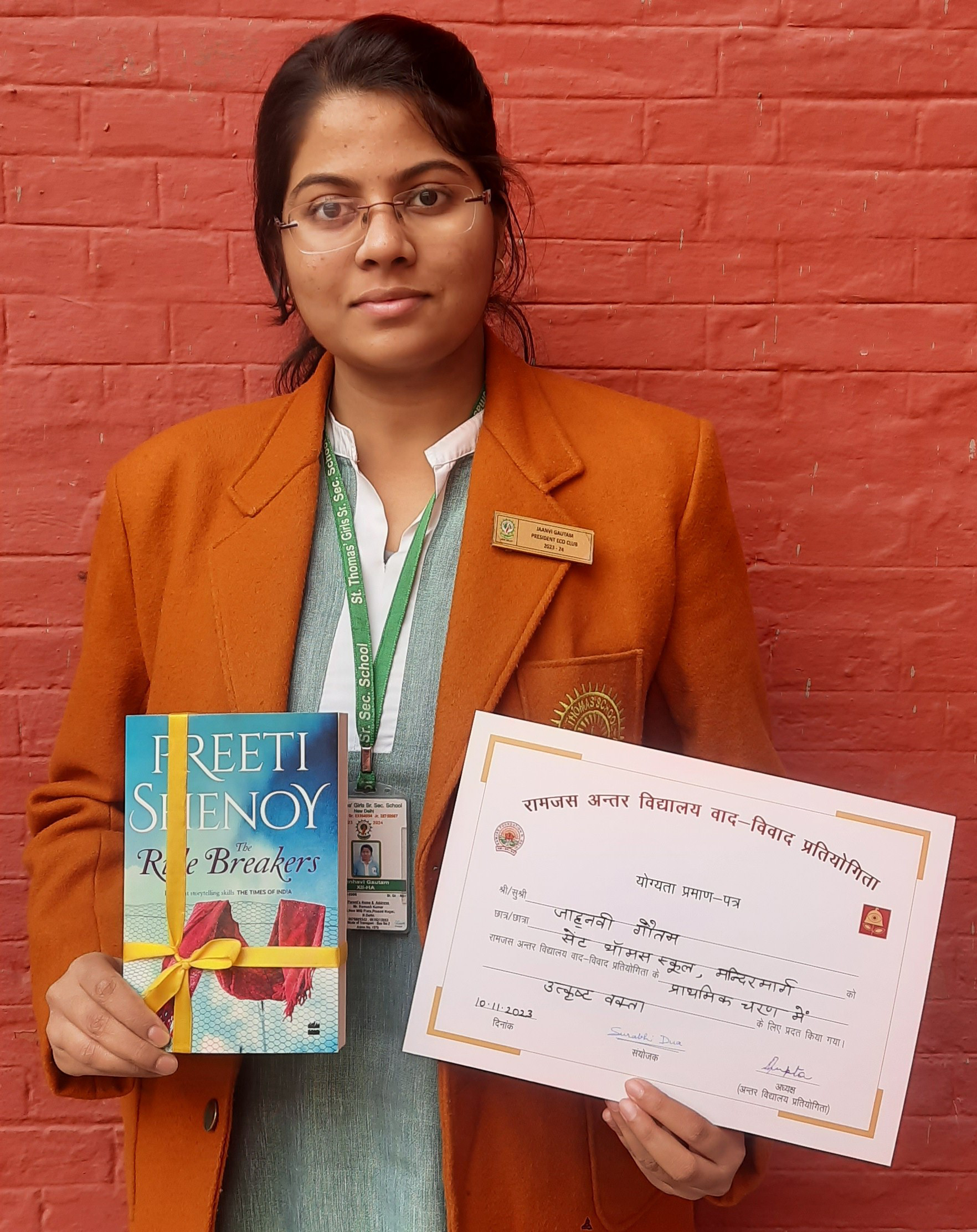 Janhavi Gautam(XIIHA) was adjudged as one of the best speaker(For) in the preliminary round in the Ramjas Inter School Hindi Debate Competition held at Ramjas School, Pusa Road.