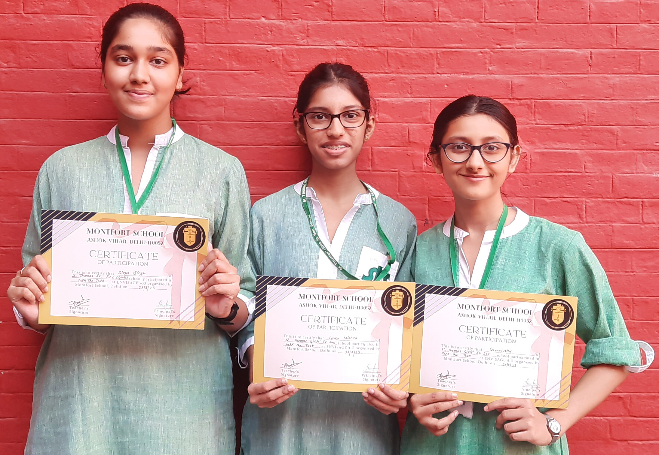 Lorea Mishra(XA), Samriddhi Bhardwaj(XIHB), Divya Singh(XICB), Riya Sachdeva(XIHA), Hansika(XIHB) won III position in Monologue Competition (Talk the talk) held at Montfort Senior Secondary School, Ashok Vihar.