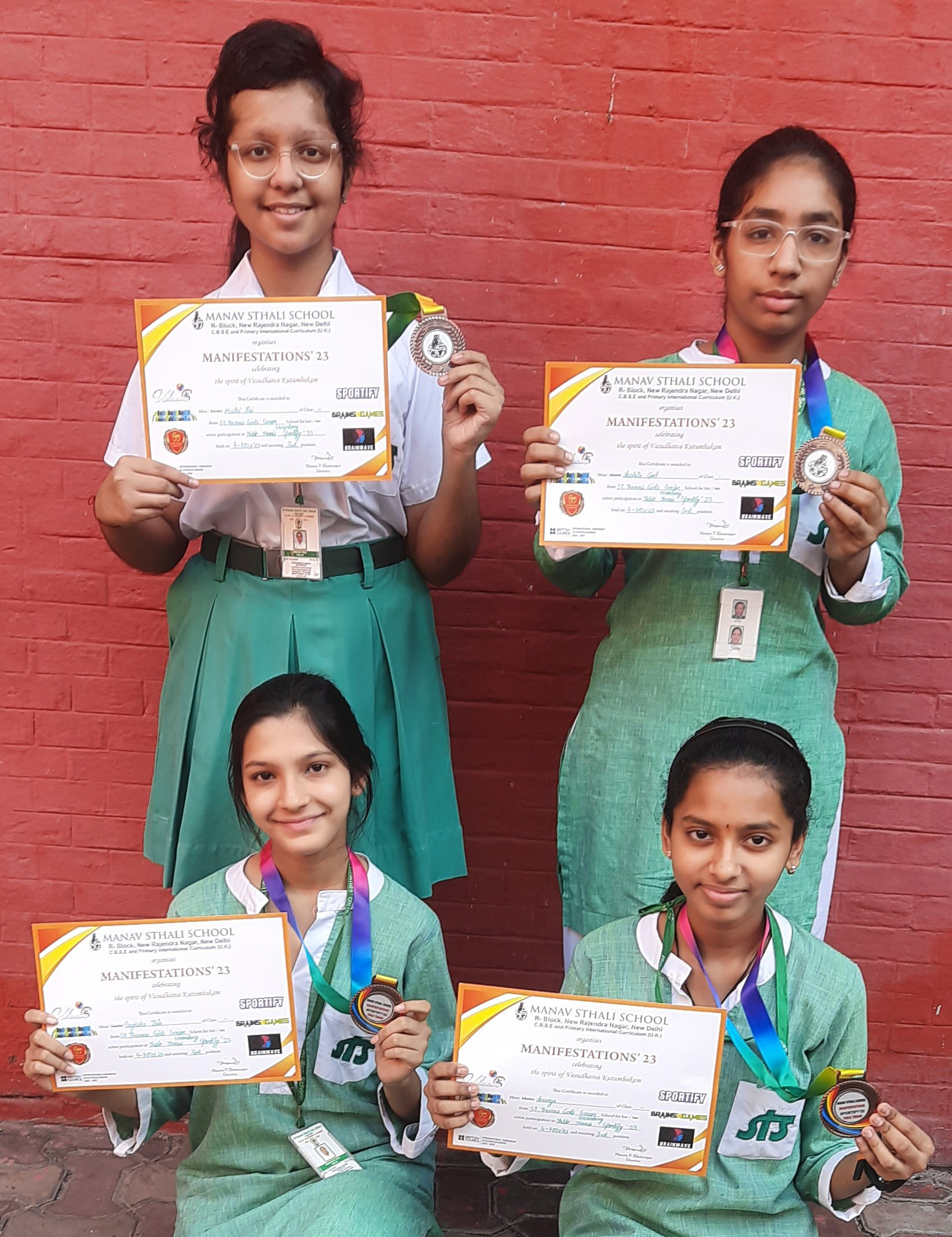 Mishti Rai(VIIIB), Sayesha Jain(IXA), Aashita Goel(IXB), Ananya(IXB) won Bronze Medals and Certificates in the Table Tennis Sportify Competition held at Manav Sthali School.