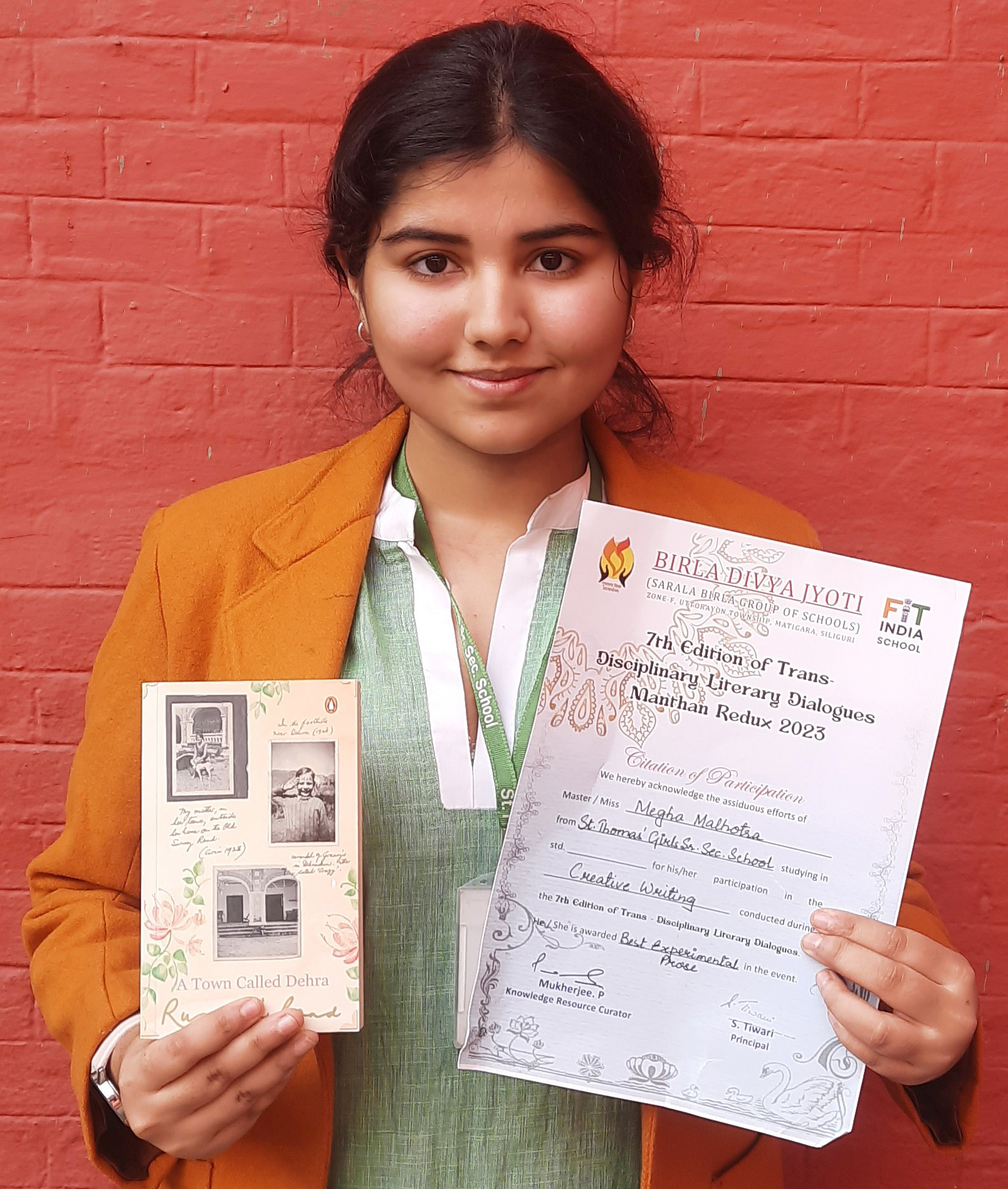 Megha Malhotra(XIHB) was awarded for the Best Experimental Prose in the online Creative Writing Competition organised by Birla Vidya Jyoti School, Siliguri.