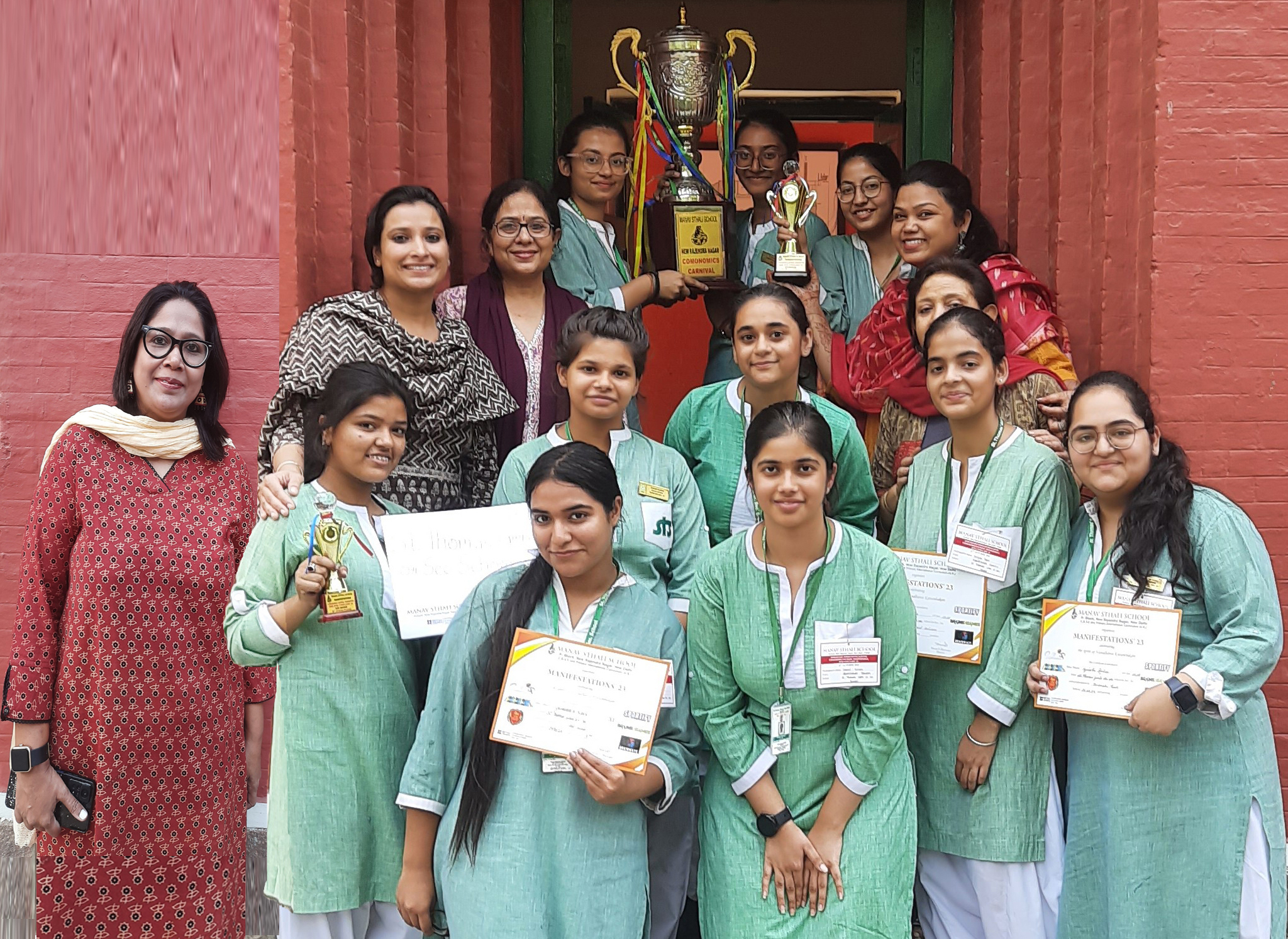 Niyati Gupta(XIIHB), N. Anushree(XIICB), Pushti Wadhwa(XIICB), Gursheen Kaur(XIICB), Tisha Vig(XIICB), Krishika Sharma(XIICB), Sargun Kaur(XICA), Saanvi Suman(XICA), Riya Sachdeva(XIHA), Myiesha Rohra(XIHA), Sarah Batra (XIICB), Riddhima Sati(XIHA) won the Rolling Trophy for the Best School held at Manav Sthali School.