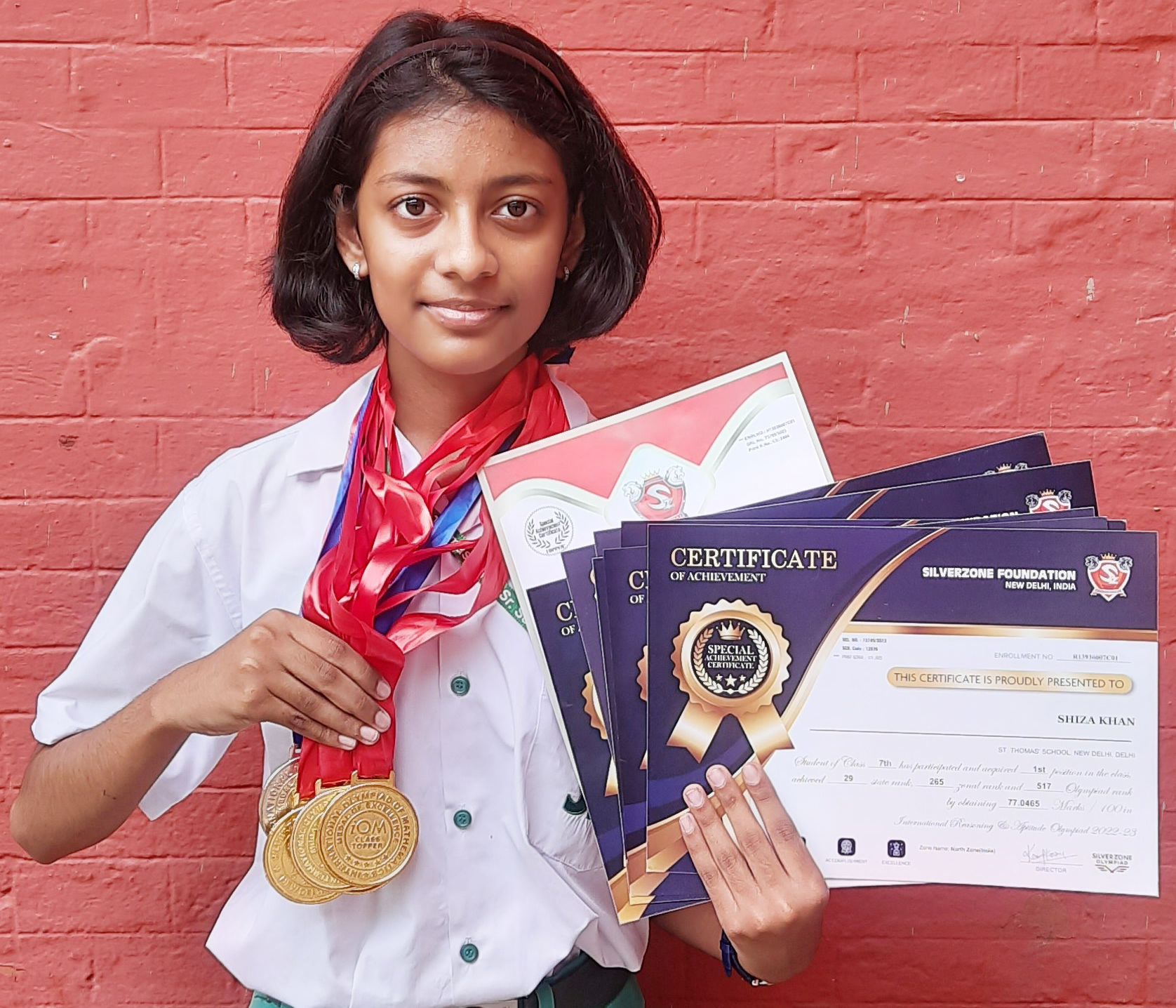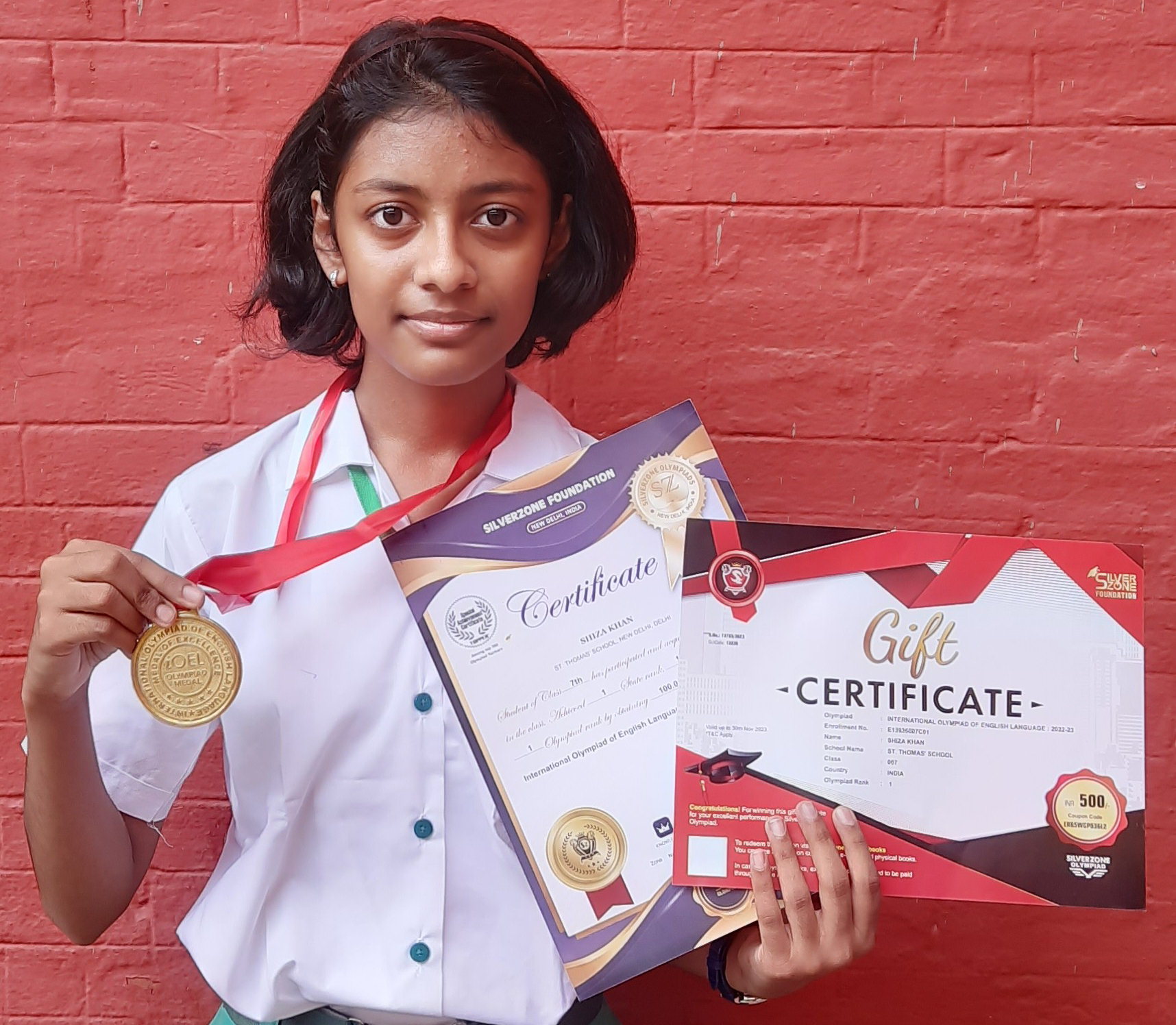 Shiza Khan (VIIIC) won - Silverzone - English Olympiad - Gold Medal & a gift voucher of Rs. 500.