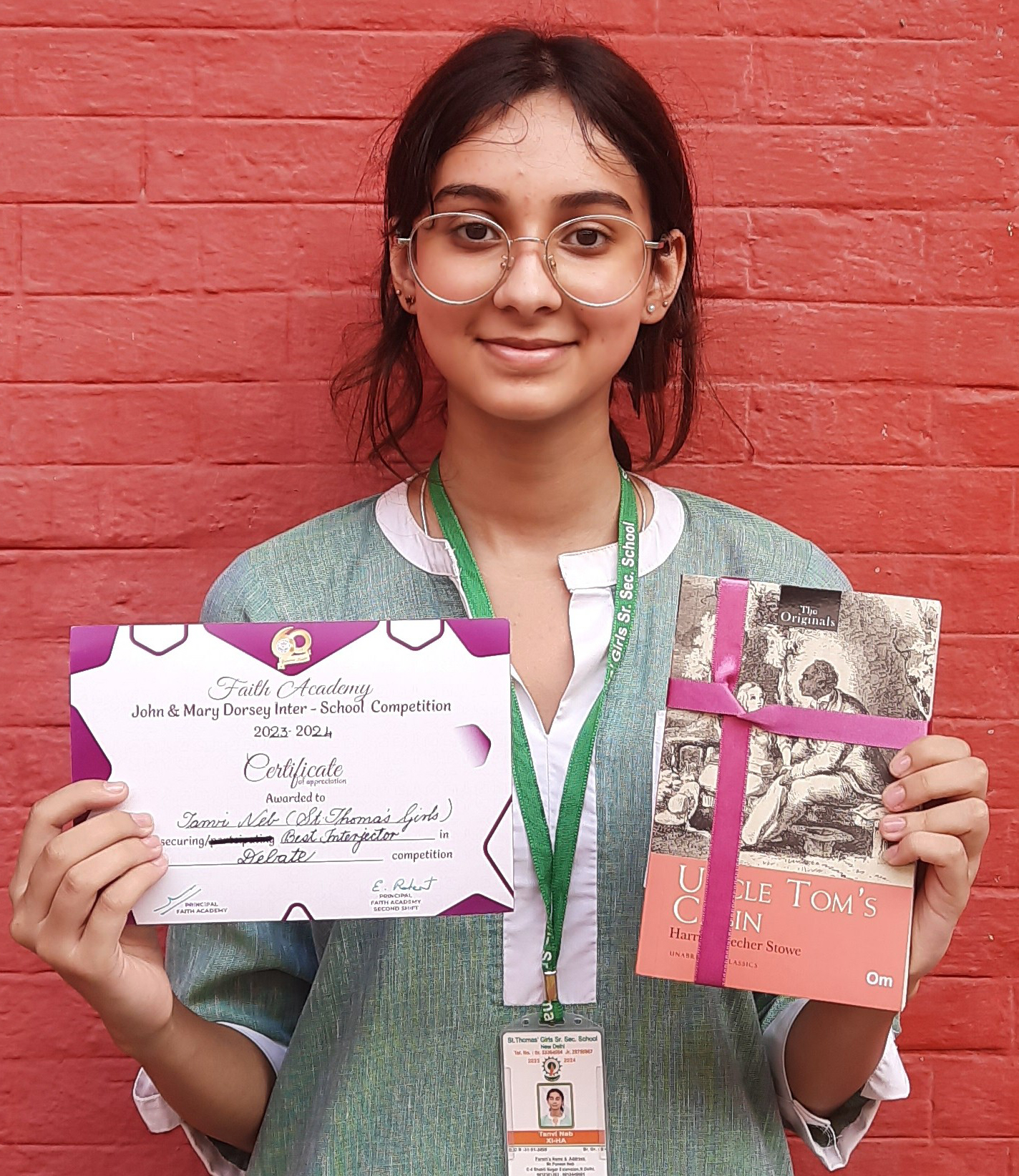 Tanvi Neb (XIHA) was adjudged as the Best Interjector in the Inter school Debate competition held at Faith Academy School. Myiesha Rohra (XIHA) and Vrinda Gupta (XIHA) won the III position in the Inter school Debate competition held at Faith Academy School.