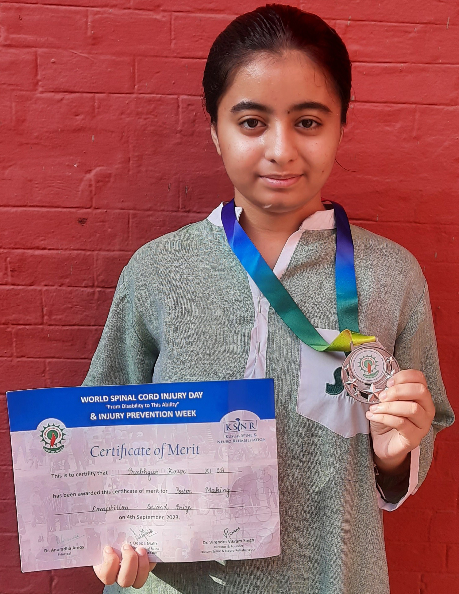 Prabhgun Kaur(XICA) won II prize in the Poster Making Competition(World spinal Cord Injury Day and Injury Prevention Week) held at St. Thomas' Girls Sr. Sec. School, Mandir Marg.