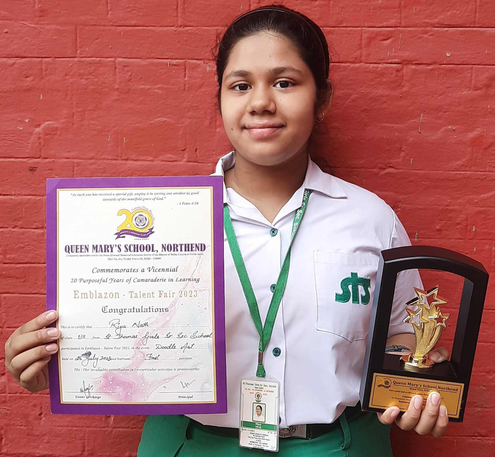 Riya Nath(VIIE) won I prize in the Doodle Art Competition held at Queen Mary's School, Northend.