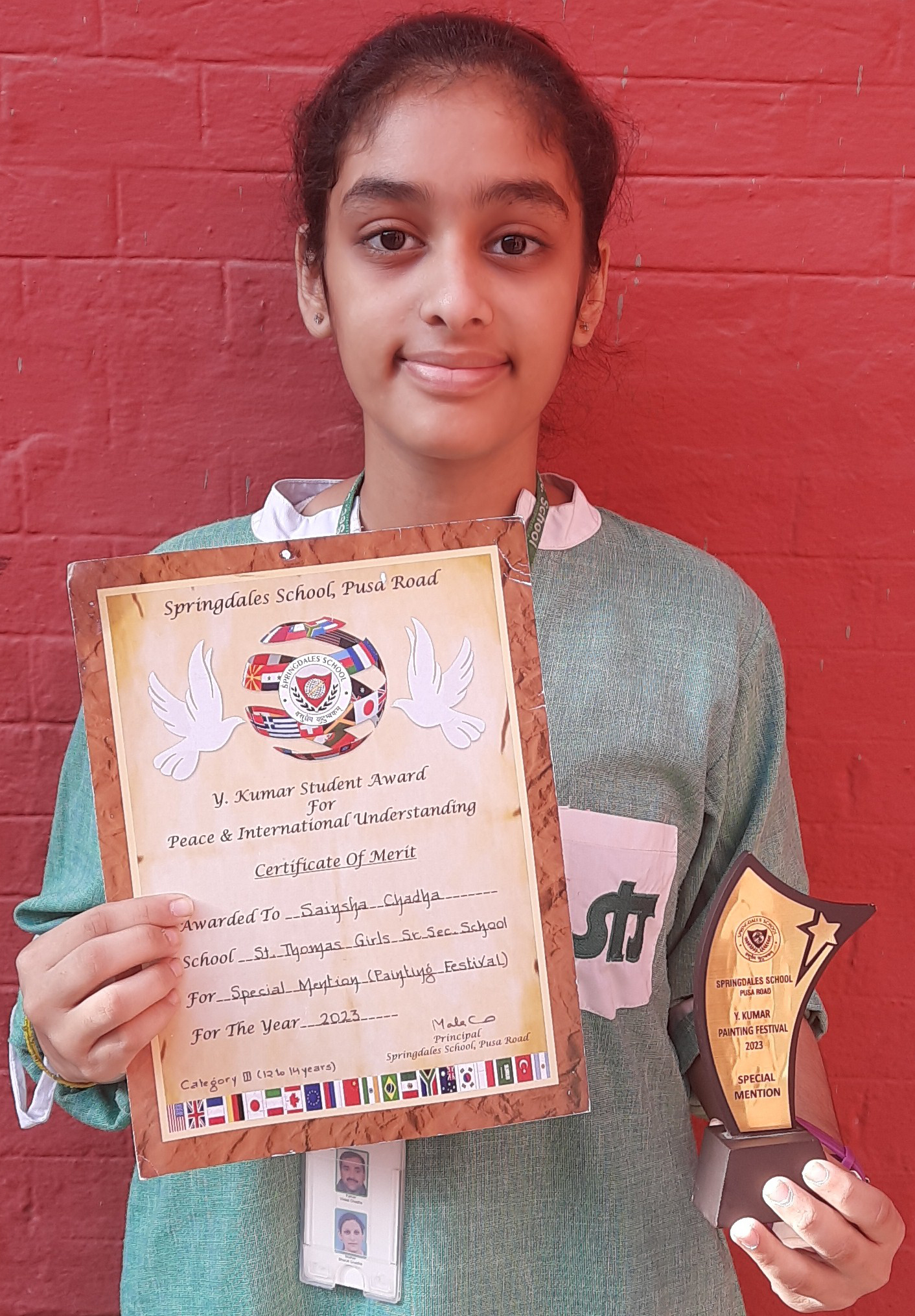 Sainsha Chadha(IXE) received a trophy and Special mention in the Painting Festival held at Springdales School, Pusa Road.