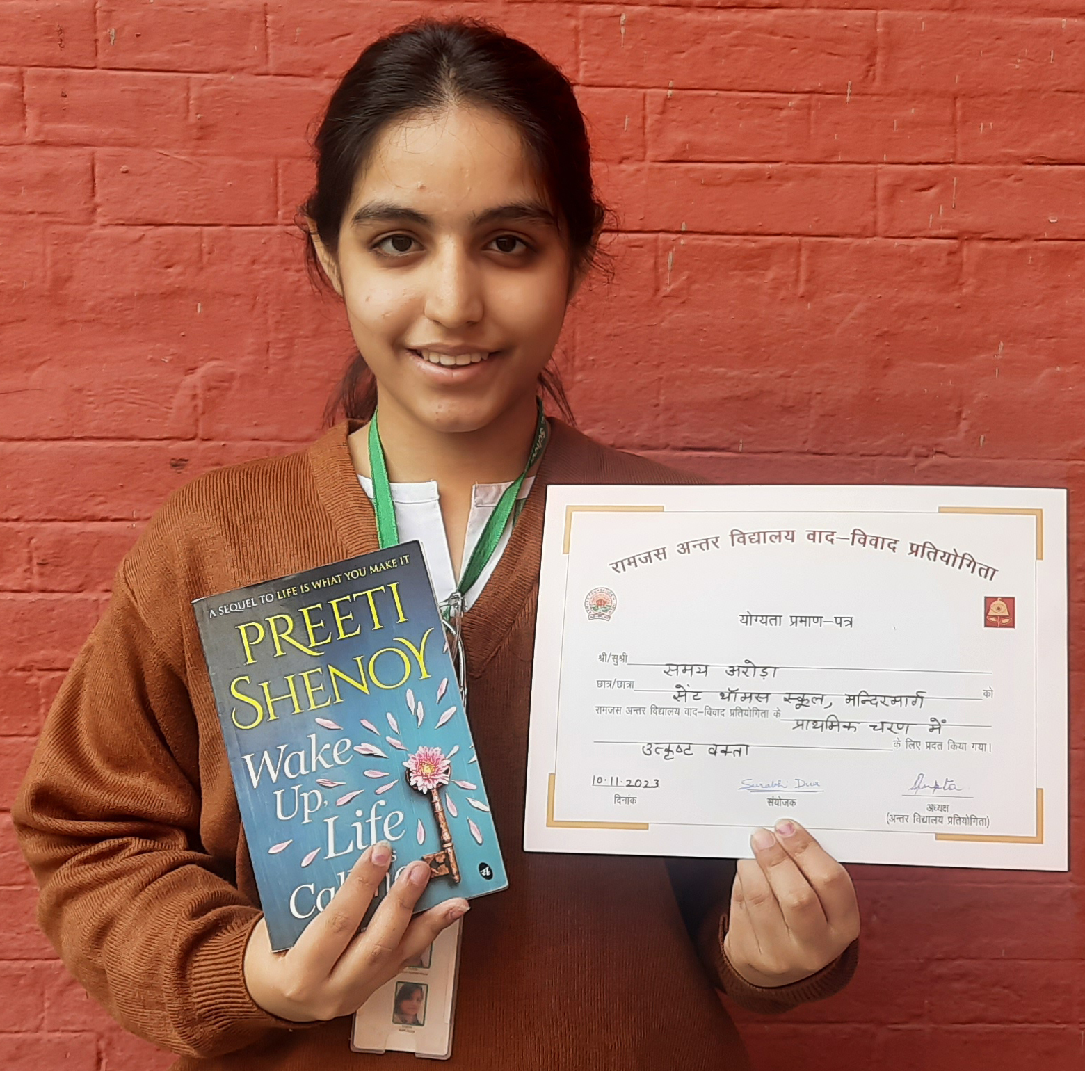 Samay Arora(XICB) was adjudged as one of the best speaker(Against) in the preliminary round in the Ramjas Inter School Hindi Debate Competition held at Ramjas School, Pusa Road.
