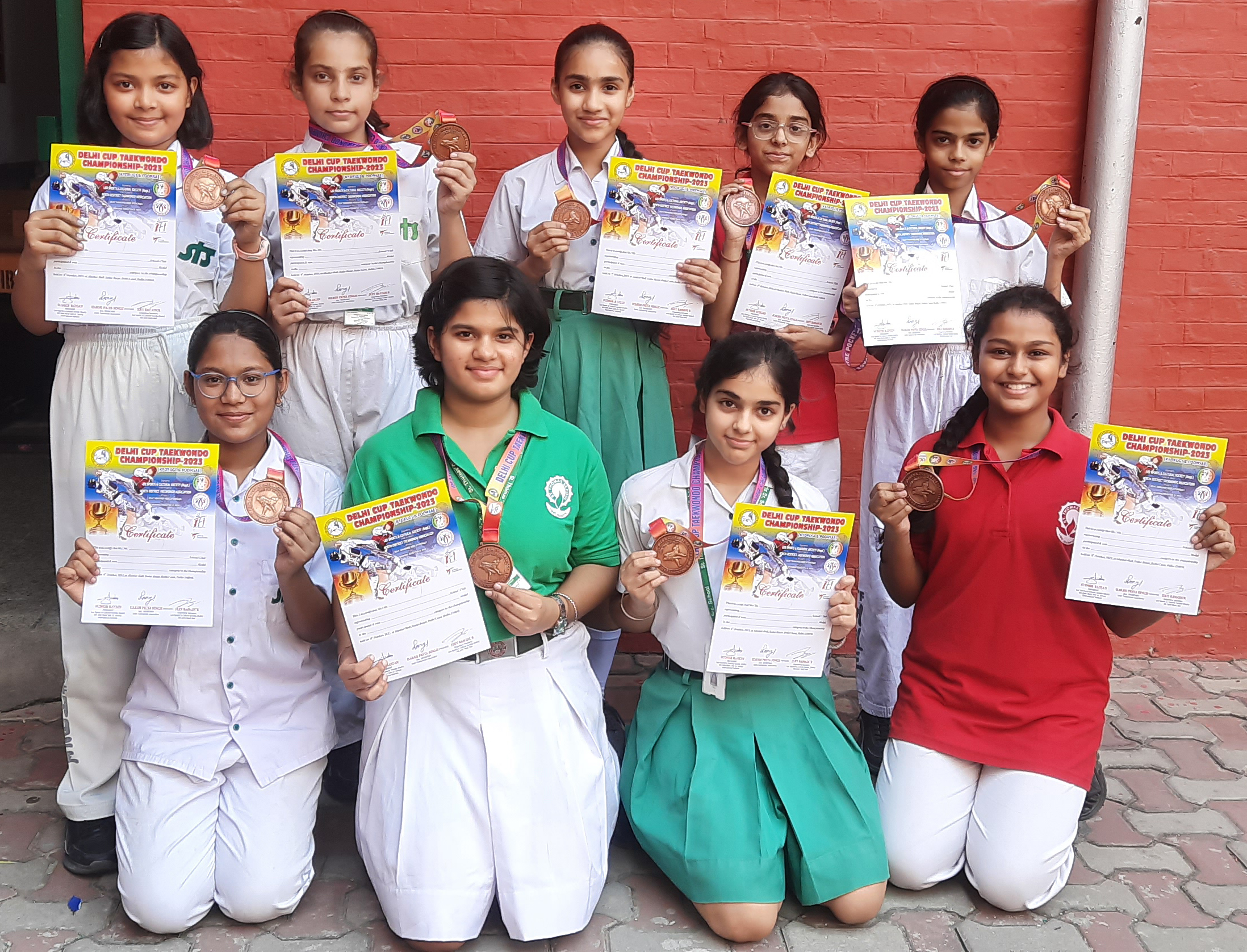 Mantra Chaurasia(VIA), Tanisha Sasmal(VID), Vidhi Thakur(VID), Maniswata(VIE), Paakhi Singhal(VIE), Vaishnavi Karanam(VIIB), Kohana Loona(VIIIA), Tanisha Batra(VIIIA), Rishika Saklani(VIIID) won Bronze Medals in the Delhi Cup Taekwondo Championship 2023