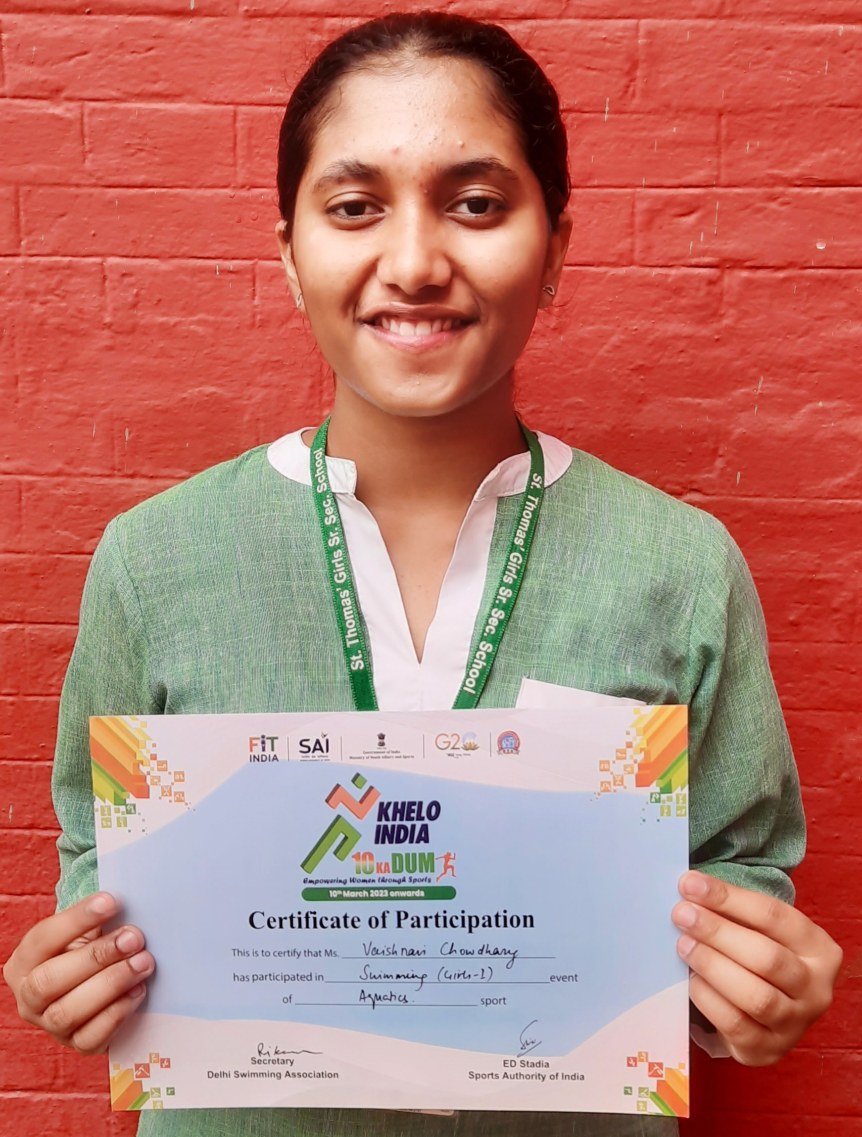 Vaishnavi Chowdhery(XE) participated in Khelo India 10 Ka Dum in the Swimming Events: