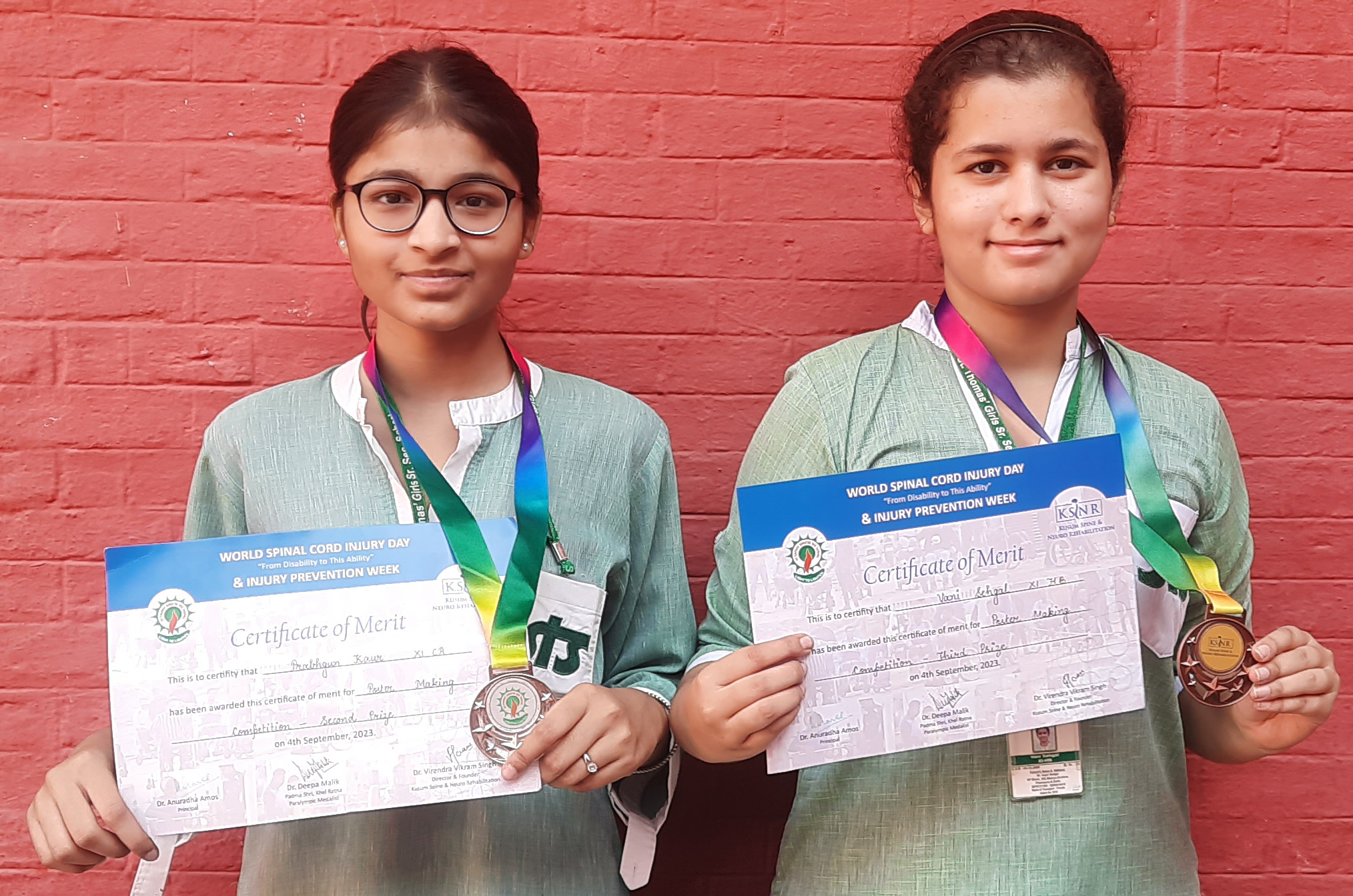Vani Sehgal(XIHB) and Jiyanshi Kurdia(XICB) won Bronze Medals and Certificates in the Poster Making Competition(World spinal Cord Injury Day and Injury Prevention Week) held at St. Thomas' Girls Sr. Sec. School, Mandir Marg.
