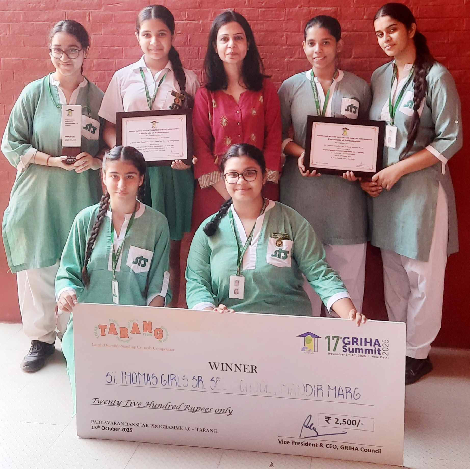 Our school secured 3rd rank in the National Green School Ranking organised by Green Mentors. Some proud Eco Club members share the award on behalf of the school.